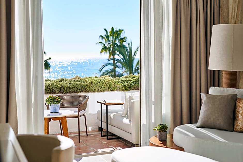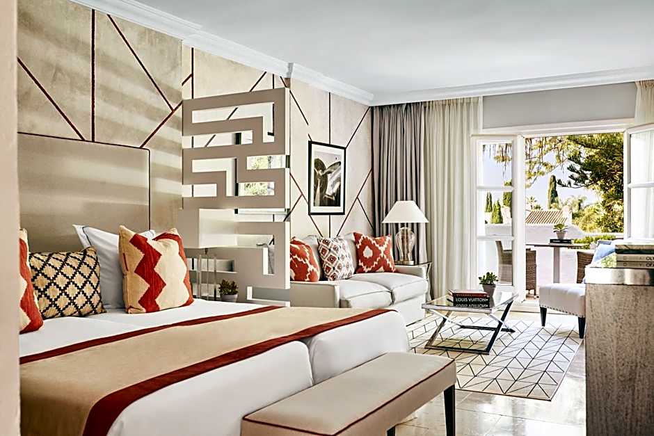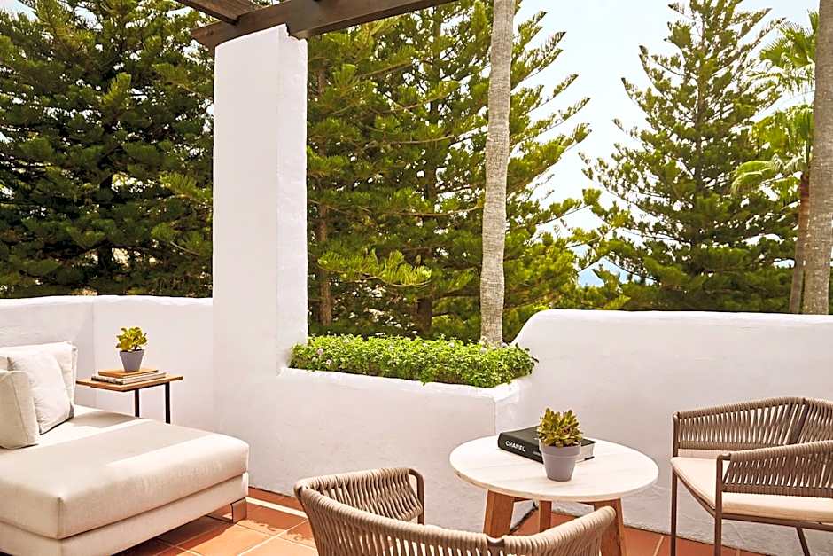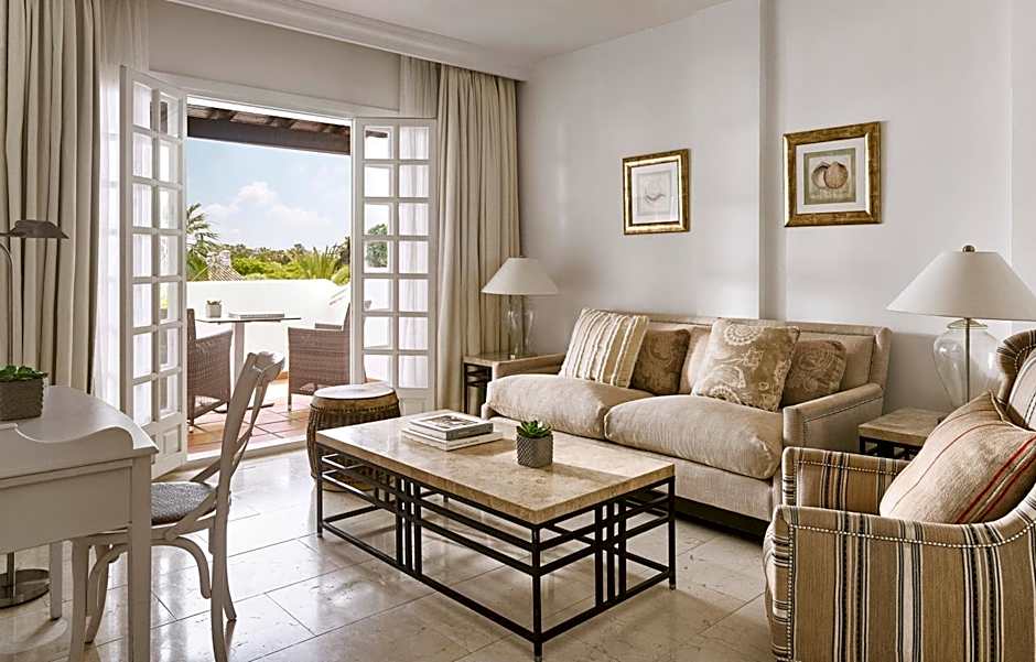 This spacious suite features a private terrace with views of the resort's tropical gardens. It features a blend of Andalusian and Mediterranean décor. The bathroom features Andalusian tiles.